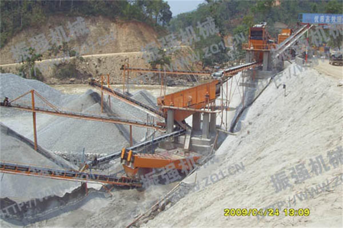 緬甸砂石料系統(tǒng)(上為破碎機,中為振動篩,下為洗砂機)