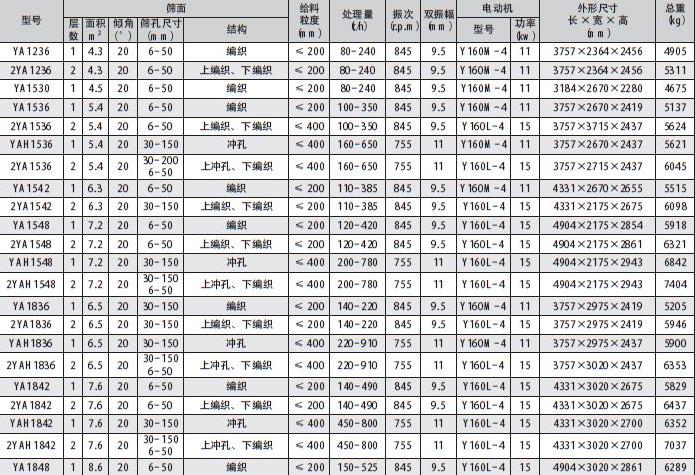 YA型圓振動篩運(yùn)點(diǎn)軌跡為圓,可廣泛應(yīng)用于選煤選礦、砂石、建材、煤炭等行業(yè)作為分級物料的通用設(shè)備。YA型圓振動篩結(jié)構(gòu)類型